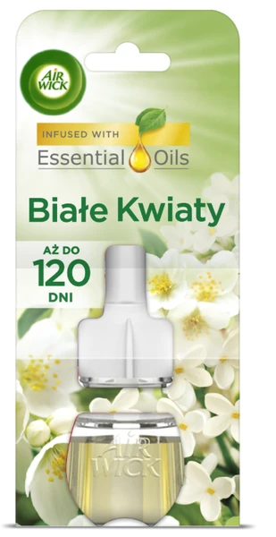 Wkład do elektrycznego odświeżacza o zapachu białych kwiatów.