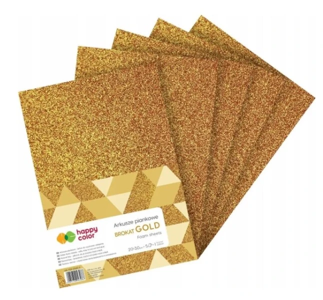 Arkusze Piankowe Złota brokatowa 20x30 cm 5 ark Happy Color
