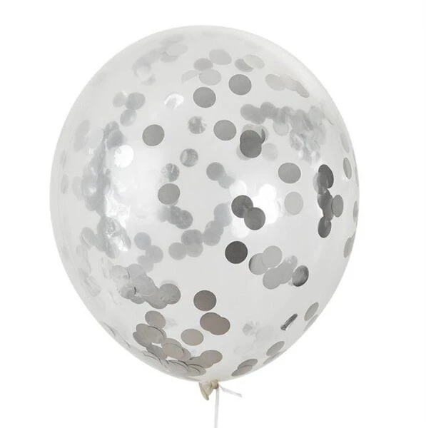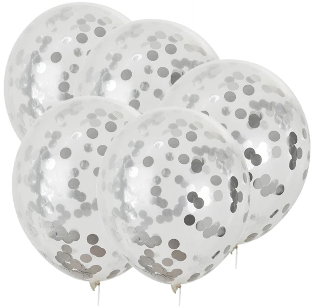 Balony z confetti 5 sztuk Srebrne 30 cm