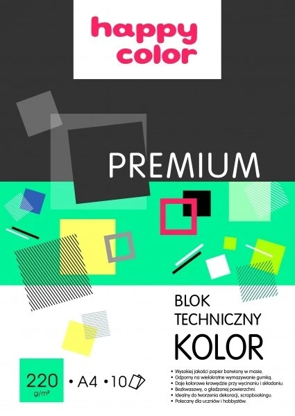 Blok techniczny A4 kolorowy Happy Color 10k 220g Premium