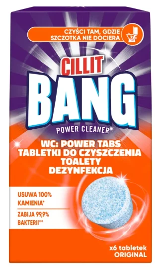 Tabletki do czyszczenia toalety Cillit Bang WC: Power Tabs zostały stworzone, aby skutecznie usuwać trudne plamy w toalecie zapewniając najlepsze efekty czyszczenia sedesów.