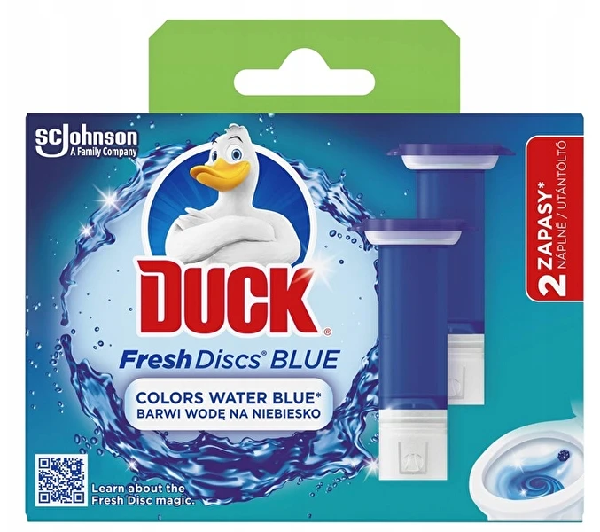 Duck Fresh Discs trzyma z dala zabrudzenia i nieprzyjemne zapachy od Twojej toalety oraz odświeża ją przy każdym spłukaniu, nadając wodzie niebieskiego koloru.