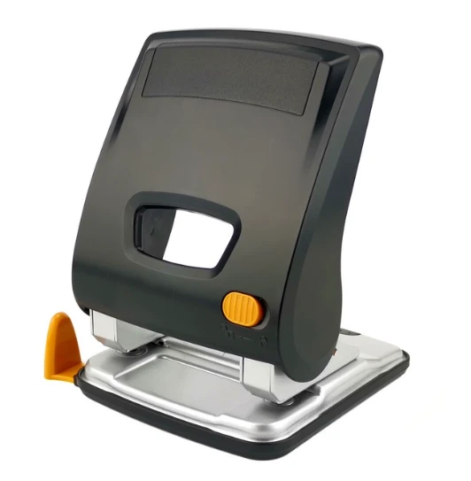 Dziurkacz biurowy z mechanizm redukującym o 60% siłę potrzebną do dziurkowania.