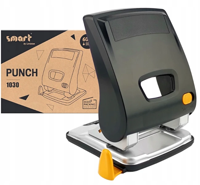 Zapewnia lekkie i szybkie dziurkowanie maksymalnie 30 kartek. Wyposażony w stabilną metalową podstawę, plastikową dźwignię z antypoślizgową nakładką, listwę formatową oraz blokadę położenia dźwigni.