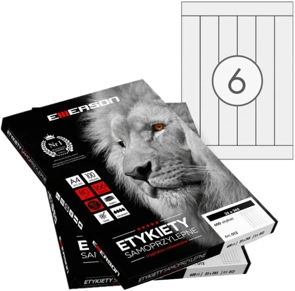 Etykiety samoprzylepne A4 EMERSON 245x35 mm (podział 6szt) 100 ark