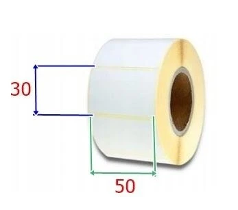 Etykiety termiczne na rolce o wymiarach 50x30 mm (1 rolka - zawiera 1000 etykiet).