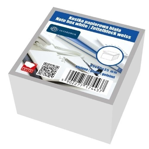 - Kostka papierowa biała 85x85x35 mm, klejona.