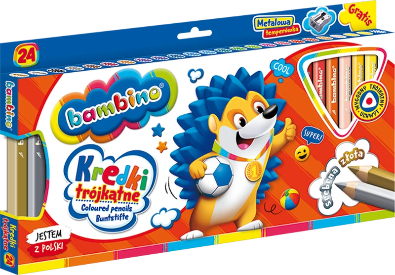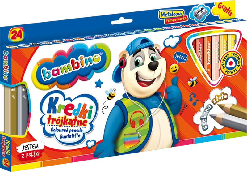 Kredki Bambino trójkątne 24kol w oprawie drewnianej + temperówka