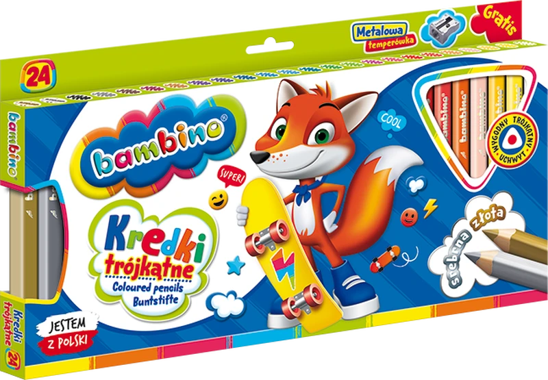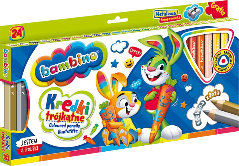 Produkowane są w Polsce, w zgodności z dyrektywą Parlamentu Europejskiego i Rady w sprawie bezpieczeństwa zabawek oraz rozporządzeniem Ministerstwa Gospodarki w sprawie zasadniczych wymagań dla zabawek, co gwarantuje bezpieczeństwo kredek Bambino.
