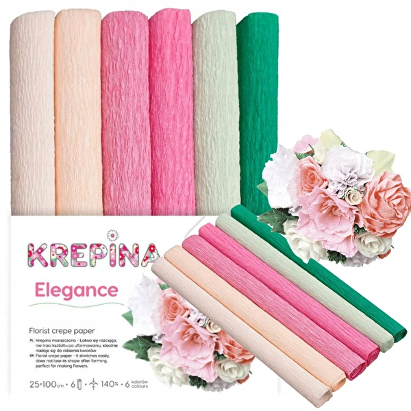 Krepina marszczona 6 rolek 25x100cm MIXE Elegance