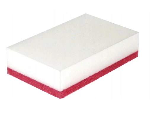 przed użyciem wypróbuj gąbkę na małym kawałku, aby sprawdzić, czy powierzchnia nie zniszczy się