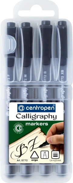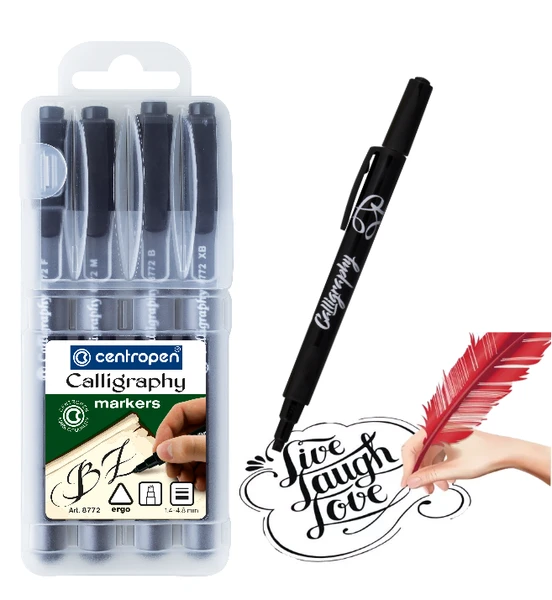 - Zestaw Centropen Calligraphy 8772 do liternictwa, który zawiera przybory niezbędne do formowania pięknego pisma odręcznego.