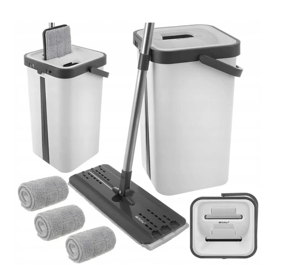 Mop z dużym dwukomorowym wiadrem 11L RUHHY z wyciskaczem i 3 chłonnymi nakładkami