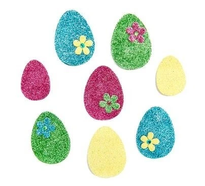 Warstwowe, brokatowe naklejki z motywami pisanek.