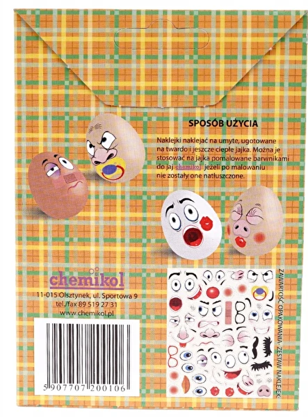 - Opakowanie zawiera zestaw naklejek na jajka,