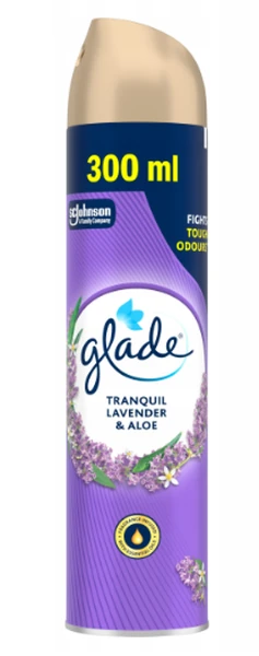 Odświeżacz powietrza w aerozolu Glade® Lavender to relaksująca woń kwiatów lawendy otulonych delikatnym aromatem bergamotki i świeżych ziół.