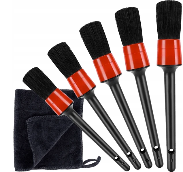 Pędzle Detailingowe Zestaw Pędzelki do Czyszczenia Samochodu 5szt +ścierka