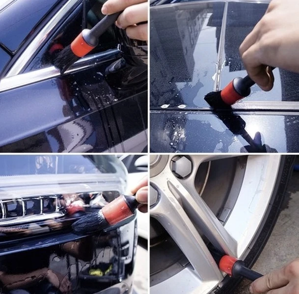 WŁOSIE - syntetyczne włosie wykonane z tworzywa sprawia, że pędzle są w stanie sięgnąć do trudno dostępnych miejsc, takich jak szczeliny, nacięcia, nawiewy, konsola środkowa, wloty powietrza czy detale wnętrza pojazdu.