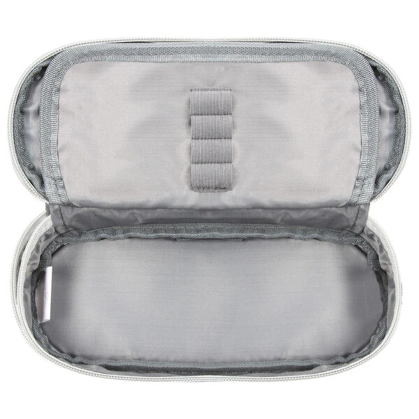 Wewnątrz pojemnej komory znajduje się wkładka z kieszonką na zamek oraz gumkami na akcesoria.
