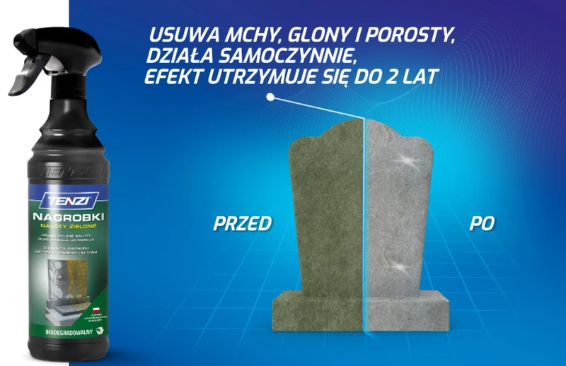 - Innowacyjny produkt do usuwania zielonych nalotów z nagrobków z:
