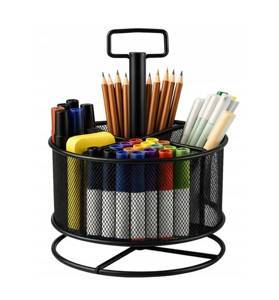 - przemyślana organizacja – wszystko pod ręką, dzięki 4 wyraźnie oddzielonym przegródkom, bez trudu posegregujesz długopisy, ołówki, nożyczki, linijki i inne akcesoria biurowe, zintegrowana rączka umożliwia szybkie przenoszenie – np. z biurka do stołu konferencyjnego