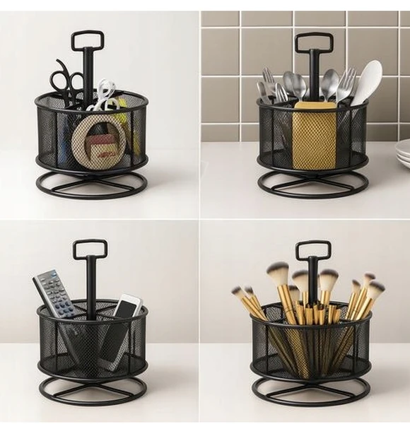- pasuje na każde biurko - ten organizer ma kompaktową formę, dzięki czemu idealnie sprawdzi się zarówno na małym biurku domowym, jak i w przestrzeni biurowej, jego obrotowa konstrukcja pozwala zaoszczędzić miejsce, a jednocześnie zapewnia szybki dostęp do wszystkich przegródek