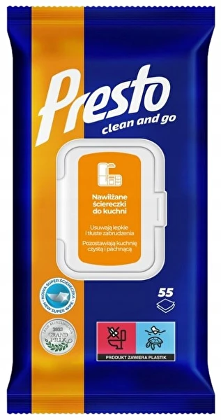 Ściereczki nawilżane Presto 2in1 do kuchni wyciągane 55 sztuk