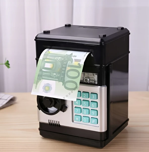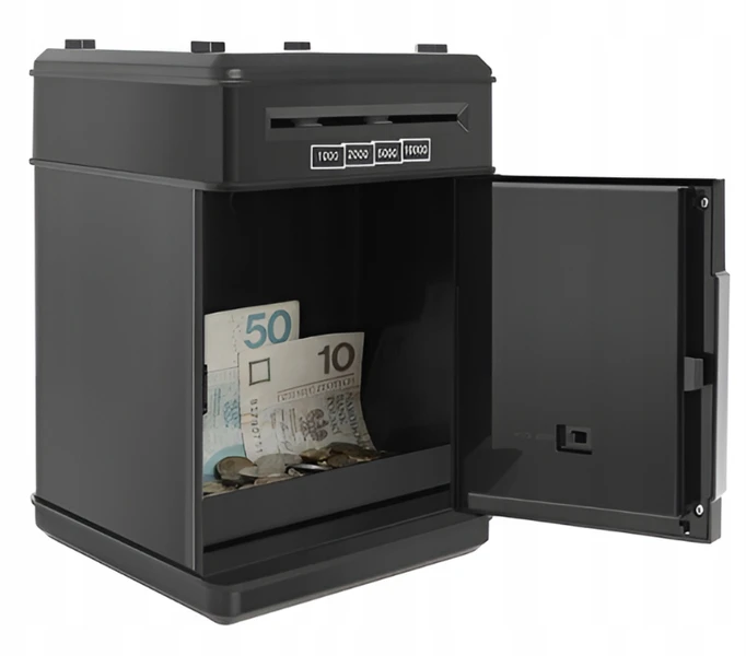Sejf Skarbonka dla Dzieci na PIN Banknoty Bankomat Monety + Kod Wpłatomat