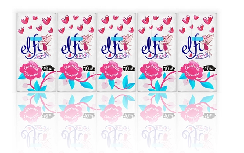 Chusteczki elfi to miękkie i delikatne 2- warstwowe chusteczki higieniczne wyprodukowane ze znacznej ilości celulozy eukaliptusowej, nadającej miękkość i wytrzymałość.