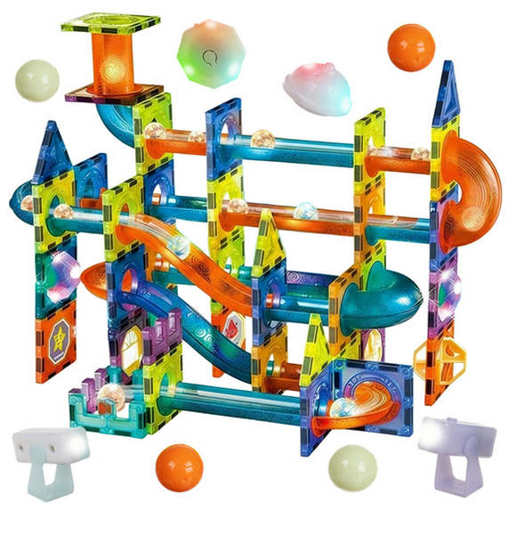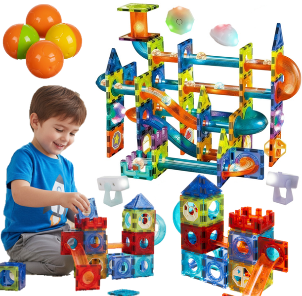 961548Klocki magnetyczne 3D z torem kulkowym - kreatywność, która świeci i fascynuje!