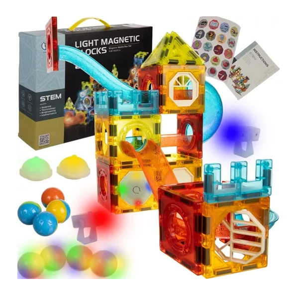 Klocki magnetyczne Świecące Konstrukcyjne Edukacyjny Tor Kulkowy 77 elem.