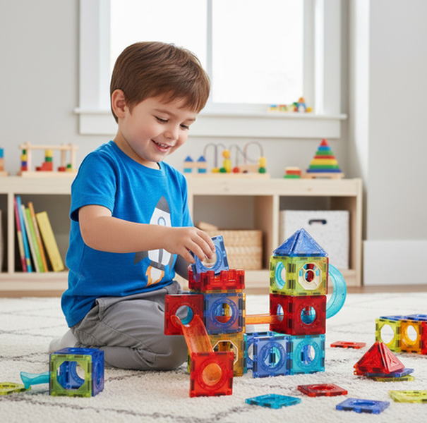 Klocki magnetyczne to prawdziwa gratka dla małych konstruktorów - 75 elementów, mocne magnesy i możliwość tworzenia niesamowitych torów kulkowych, budowli 3D i przestrzennych labiryntów.