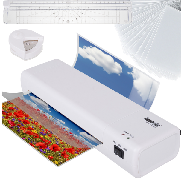 Laminator A4 IZOXIS 4w1 zestaw zgrzewarka trymer zaokrąglacz + 60 folii