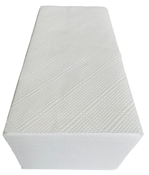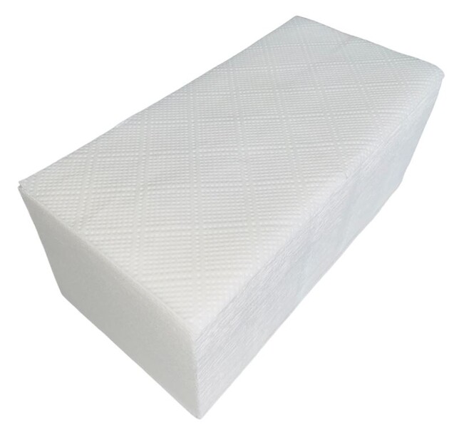 Innowacyjny system składania: Ręcznik jest składany w charakterystyczny kształt litery „V”, co ułatwia wyciąganie pojedynczych arkuszy i zapewnia równomierne rozłożenie ręczników w dozowniku.