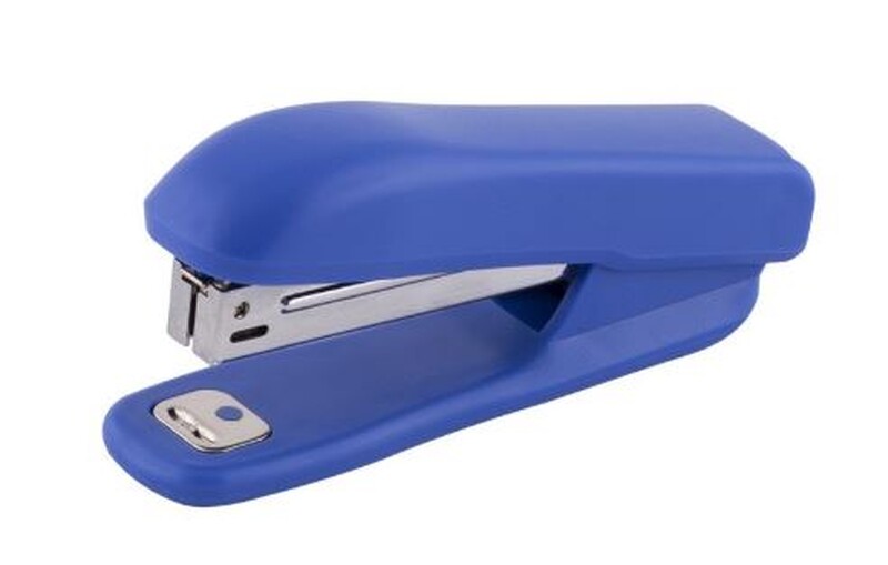 Mały poręczny zszywacz biurowy. Kompaktowy, zmieści się w każdym miejscu. Wyposażony w metalowy mechanizm oraz plastikowy korpus z wbudowanym rozszywaczem.