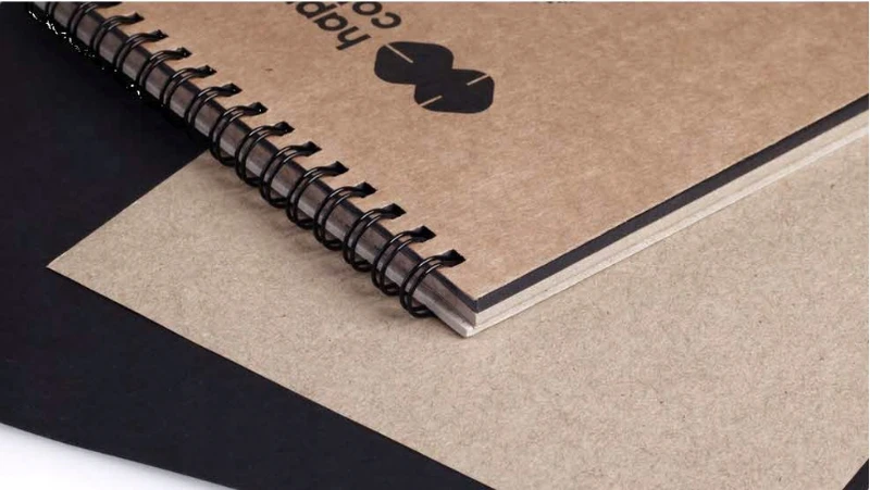 Szkicownik na spirali na sztywnym kartonowym podkładzie z dwoma rodzajami papieru – czarnym i brązowym