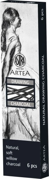 Miękki i naturalny węgiel wierzbowy do rysowania i szkicowania na różnych powierzchniach. Dostępny w dwóch różnych średnicach 6-8 mm oraz 3-6 mm. Gotowe prace należy zabezpieczyć fiksatywą.