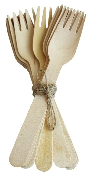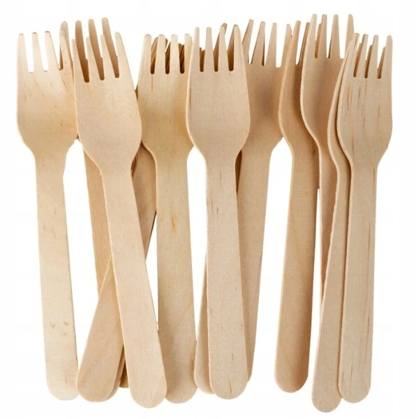 Widelce jednorazowe wykonane z drewna o długości 16 cm.