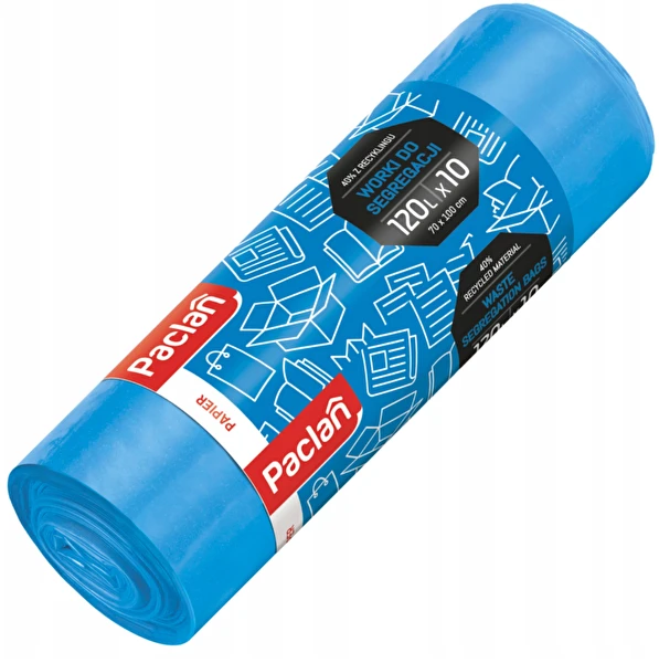 Worki na śmieci 120L 10szt niebieskie Paclan do segregacji papieru