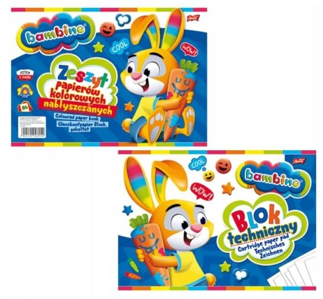 - Zeszyt papierów kolorowych nabłyszczanych BAMBINO A4, 10 kartek