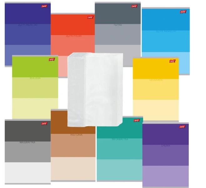Zestaw 10 szt zeszytów tematycznych A5 60k + 10szt A5 okładek na zeszyty