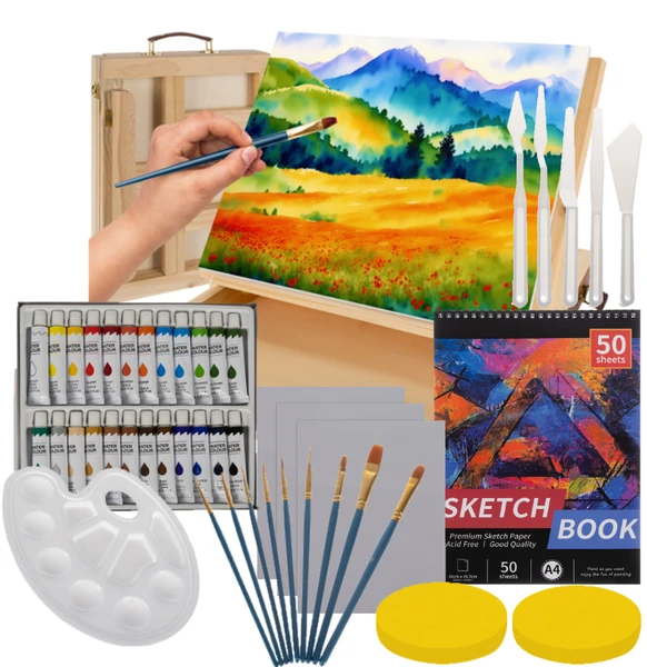 ✅ zawiera wszystko, czego potrzeba do rozpoczęcia malowania - nie musisz się martwić, zestaw oferuje wszystko, co potrzebne do tworzenia: farby, pędzle, podobrazia, a nawet sztalugę, to świetny wybór dla osób, które dopiero zaczynają swoją artystyczną przygodę