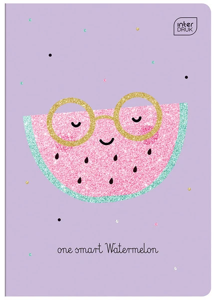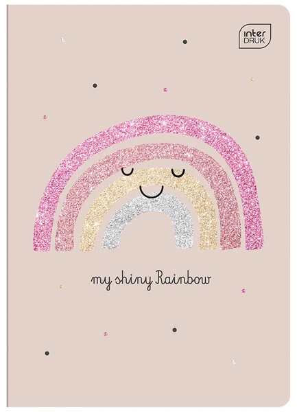 Okładka lakier UV. Zaokrąglone rogi. Zeszyty w intensywnych kolorystycznie grafikach, zaprojektowane zgodnie z aktualnymi trendami w designie i modzie. Wysokiej jakości okładka zabezpieczona błyszczącym lakierem ochroni wszystkie ważne notatki. Piękne wzornictwo z brokatem