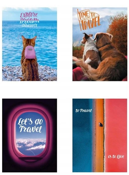 - Cechy szczególne – laminowana okładka, kratki koloru niebieskiego, margines