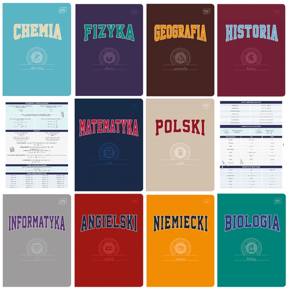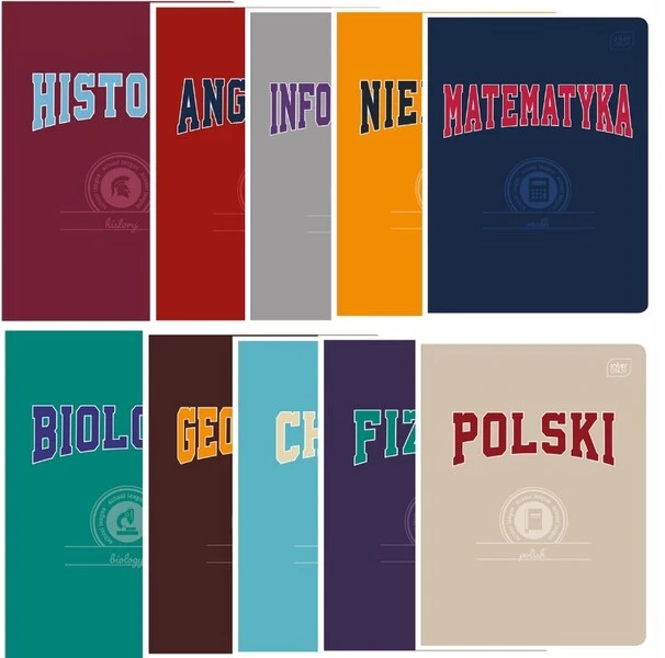 • zestaw zawiera zeszyt do: polskiego, matematyki, angielskiego, chemii, biologii, angielskiego, niemieckiego, geografii, historii i informatyki