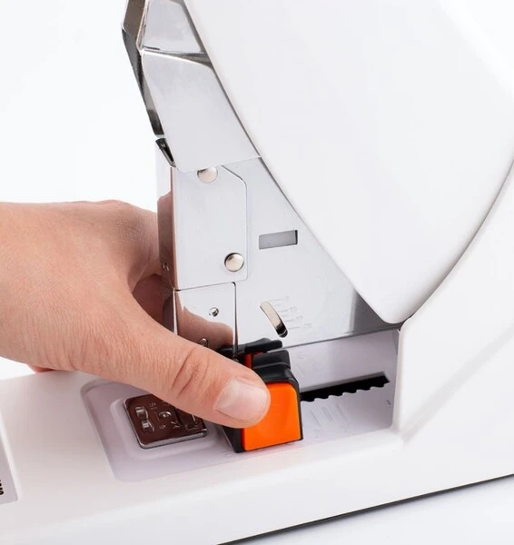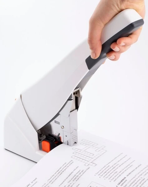 Wyjątkowy zszywacz biurowy z redukcją siły zszywania do 60%, dzięki której zszywanie większej ilości kartek staje się łatwe i przyjemne. Zszywacz wykonany jest z trwałego tworzywa, wewnętrz posiada metalowy mechanizm. Zszywacz wyposażony jest w dodatkowy przycisk służący do usuwania zablokowanych zszywek. Stablilna podstawa nie rysuje podłoża.